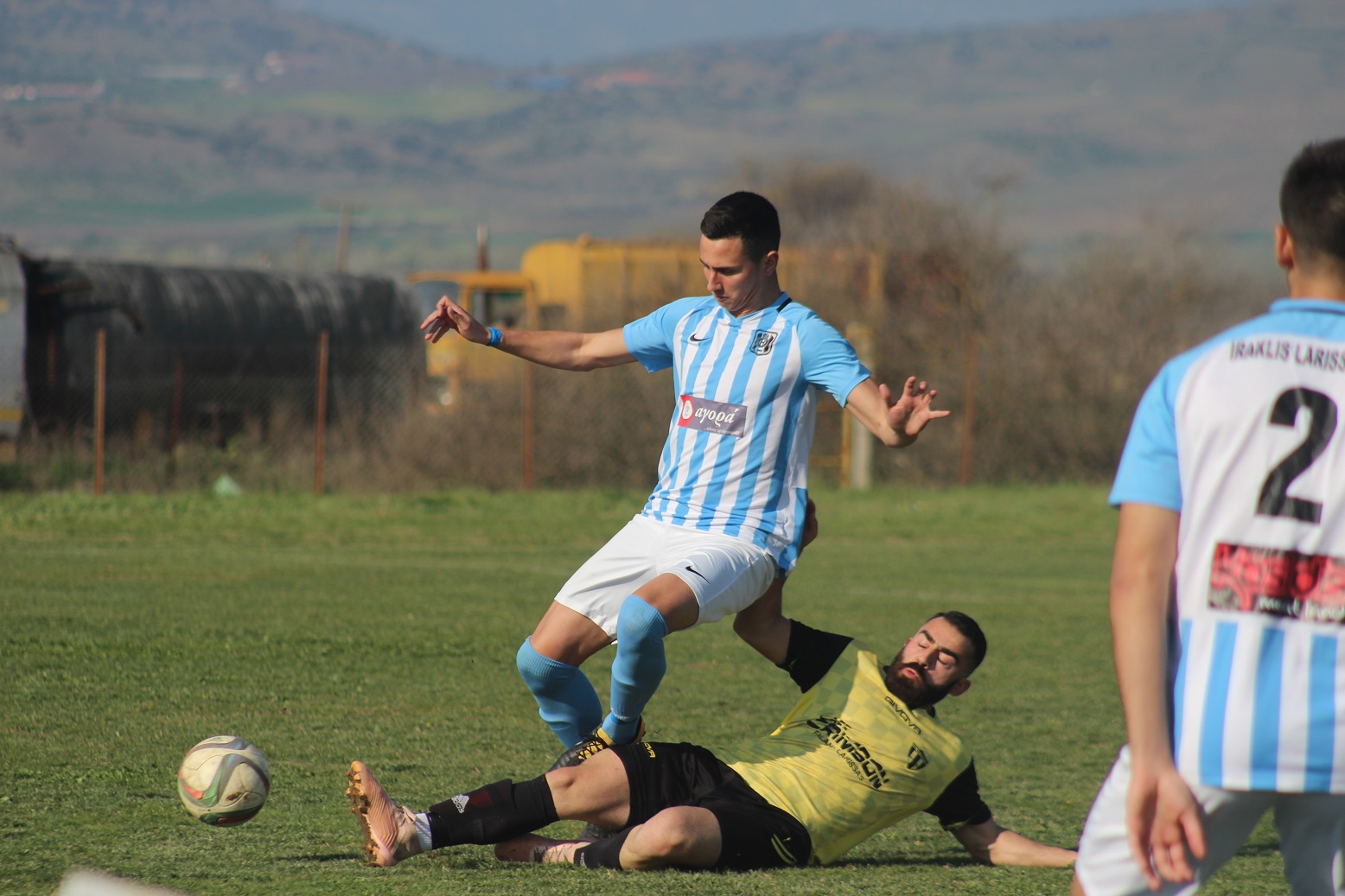Η απάντηση στις ευκαιρίες από τους «κυανόλευκους» ήρθε στο 25ο λεπτό. Ο Αποστόλης Νάστας εκτέλεσε το φάουλ που κέρδισε ο Ηρακλής Λάρισας, ο Ηρακλής Γκιουρσάνης σούταρε αρχικά και η μπάλα σταμάτησε σε σώματα αμυντικών των γηπεδούχων, ενώ ο Αναστάσης Μανιώτης σούταρε στη συνέχεια και η μπάλα σταμάτησε στο δεξί κάθετο δοκάρι της εστίας του Βασίλη Μάλτζιαρη, με τον πορτιέρο έπειτα να μπλοκάρει τη μπάλα πάνω στη γραμμή.