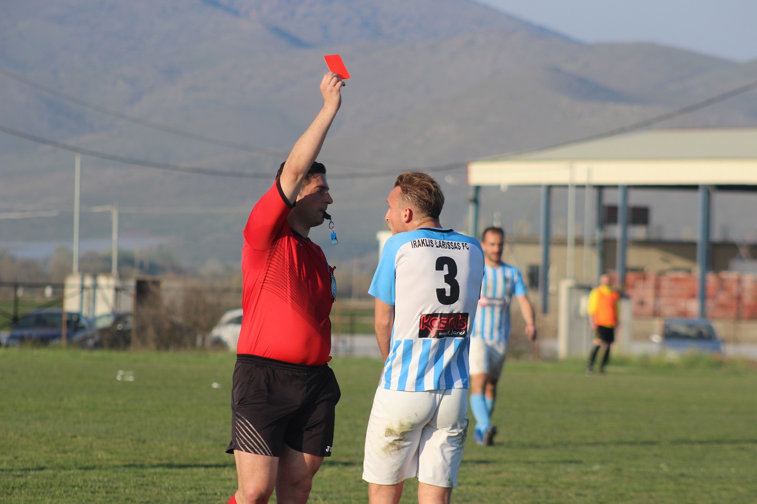 Νωρίτερα όμως και στο 66′, ο Νίκος Φορτομάρης με ένα σκληρό μαρκάρισμα στον Γιώργο Λεσάι αντίκρισε σωστά τη δεύτερη κίτρινη κάρτα από τον κ. Αγησίλαο Μπουμαρσόπουλο και αποβλήθηκε με κόκκινη κάρτα.
