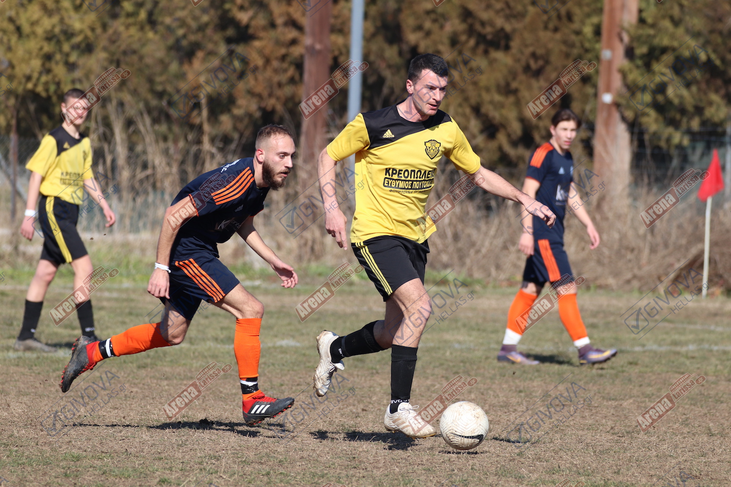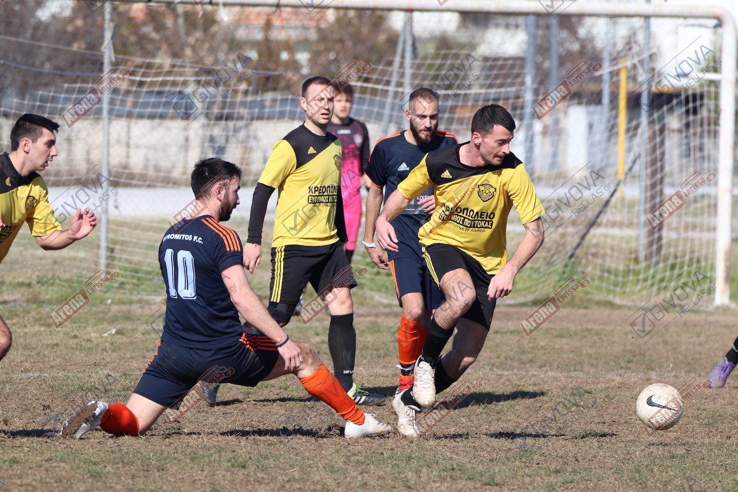 Στο πρώτο ημίχρονο ο Σκριάπας στο 15′ απείλησε για τους γηπεδούχους, ενώ για τους φιλοξενούμενους λίγο πριν το ημίχρονο ο Χρήστος Τανάγιας, έδωσε το προβάδισμα στο σκορ στο συγκρότημα του Χατζημπίρου, αφού τσίμπησε την μπάλα από τον Μελετιάδη.