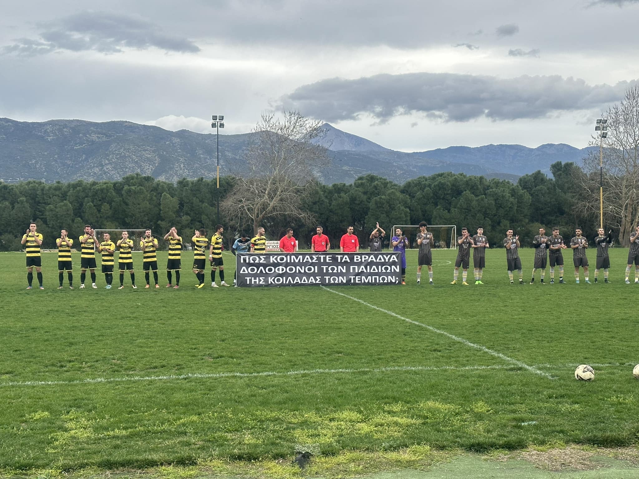 Ιδιαίτερα αξιέπαινη και το πανό το οποίο ετοίμασαν οι γηπεδούχοι για τα θύματα των Τεμπών, το οποίο τα λέει όλα…
