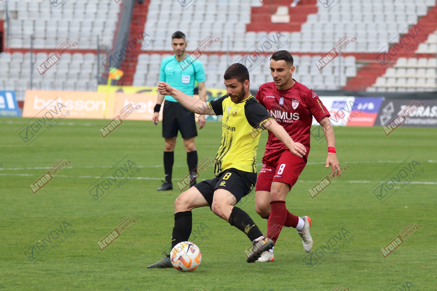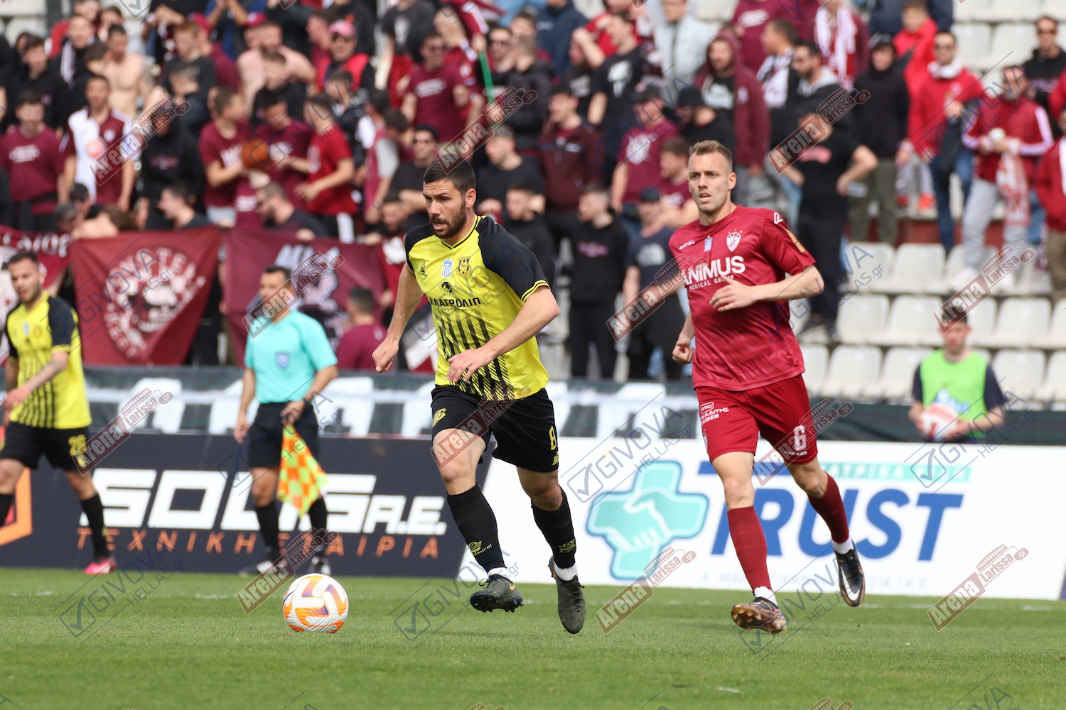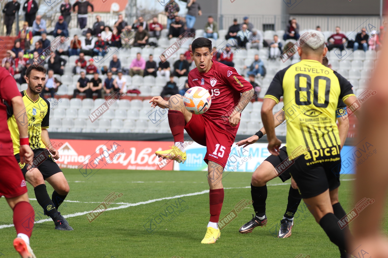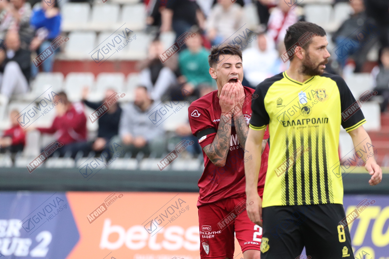 Στα τελευταία λεπτά του παιχνιδιού, οι «βυσσινί», δεν κατάφεραν να απειλήσουν συστηματικά. Δεν υπήρχε συνοχή, ούτε σωστή δημιουργία. Το 4 – 2 – 4 με Ογκμπόε και Τσιριγώτη στη κορυφή δεν «βγήκε» του κόουτς Ταουσιάνη, όπως ούτε οι διορθωτικές αλλαγές που επιχείρησε. Δεδομένων των συνθηκών, η ομάδα της Καρδίτσας έγινε πιο αμυντική.