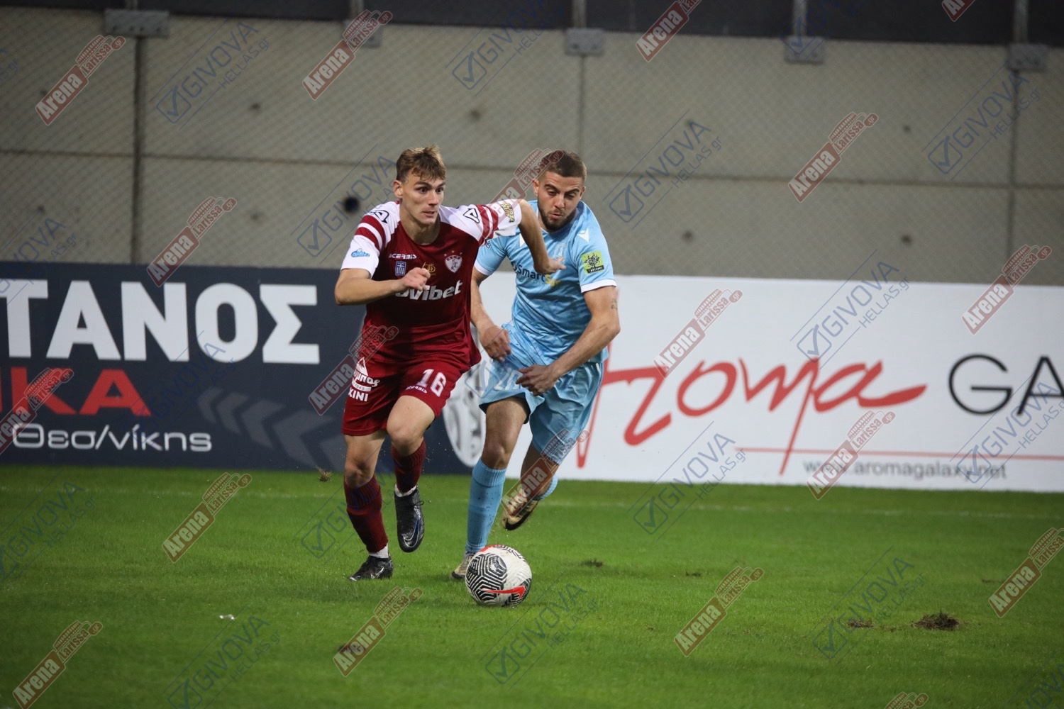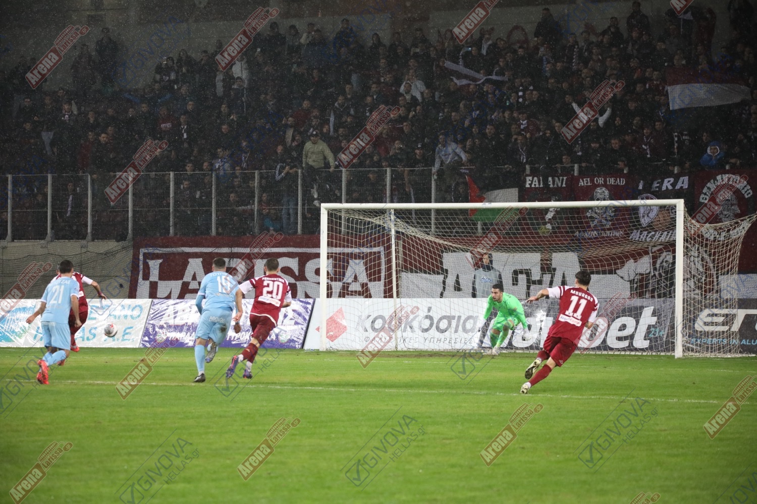 Το τερέν του AEL FC ARENA ιδιαίτερα στο δεύτερο μέρος μετατράπηκε σε λίμνη σε πολλά σημεία, με αποτέλεσμα να παιχτεί λίγο ποδόσφαιρο.