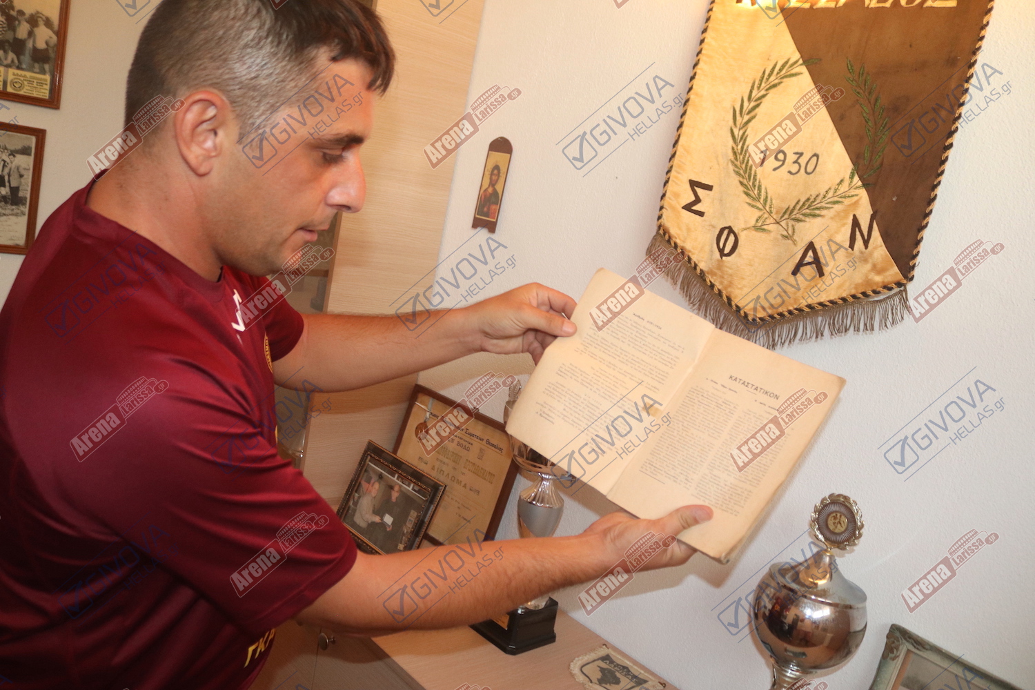 Στα γραφεία του συλλόγου στο γήπεδο του Συκουρίου περιηγηθήκαμε μαζί με τον… αρχιτέκτονά τους, Νίκο Ζέβλα, ο οποίος και αφιέρωσε αρκετή ώρα ούτως ώστε να μας μιλήσει για κάθε ένα αντικείμενο ξεχωριστά.