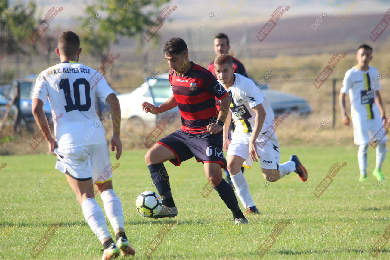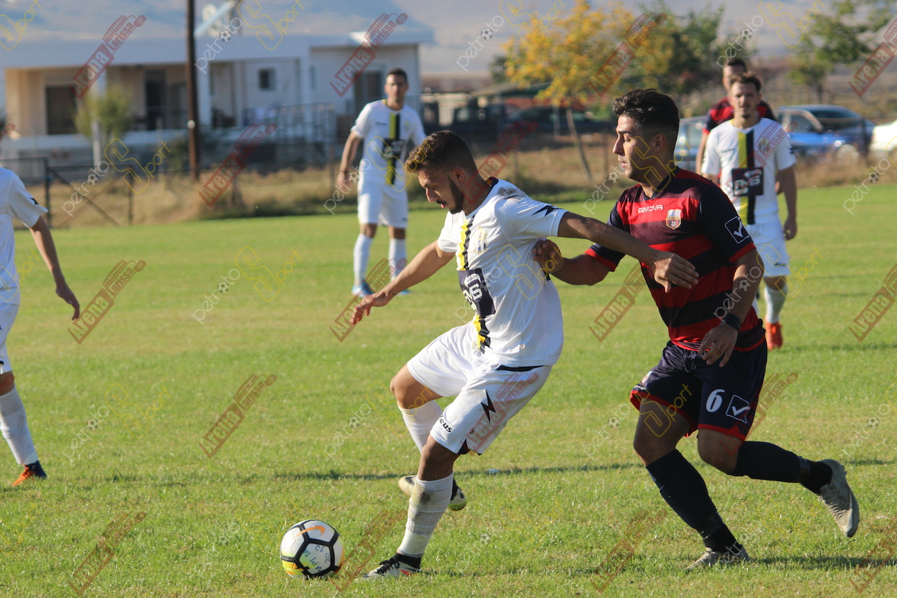 Στο 34ο λεπτό ο Δημήτρης Κίτσιος έβαλε τη Λάρισα 2012 σε θέση νικητή στο παιχνίδι με κεφαλιά ύστερα από την όμορφη σέντρα του Χρήστου Δαλαμπύρα. Λίγο πριν ολοκληρωθεί το πρώτο ημίχρονο, η Λάρισα 2012 σημείωσε και δεύτερο τέρμα με τον Χρήστο Σελήνη, όμως ο πρώτος βοηθός κ. Νάκας είχε διαφορετική άποψη και ακύρωσε το τέρμα ως οφ σάιντ.