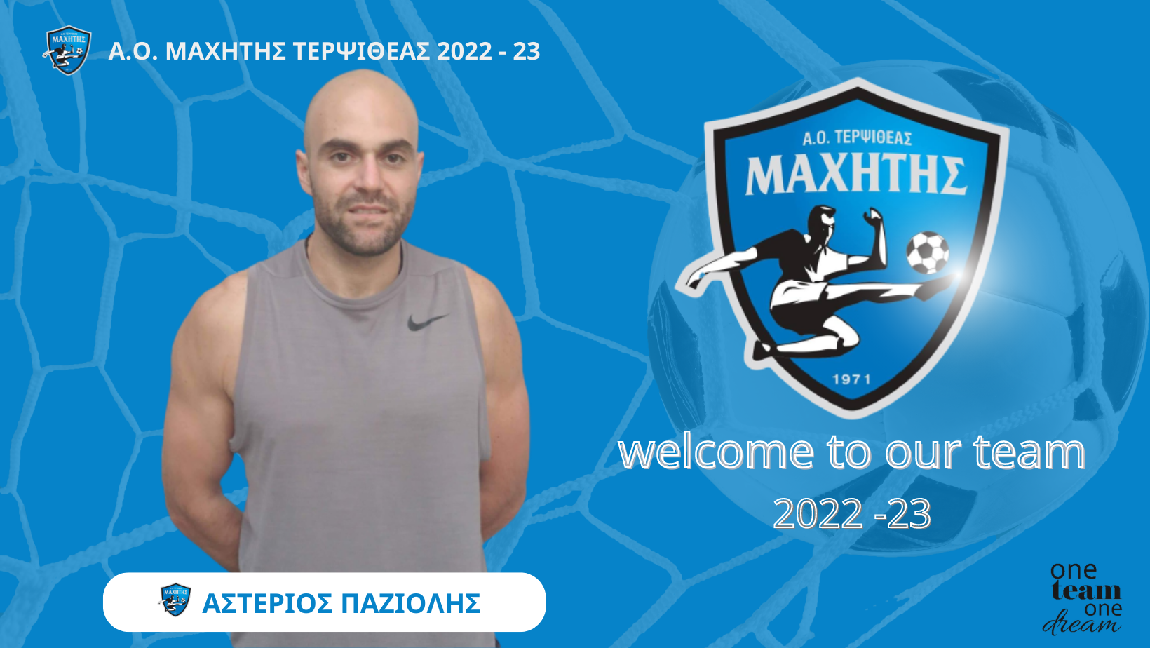 Καλωσορίζουμε τον Αστέριο ξανά στην οικογένεια του Α.Ο. Μαχητή και του ευχόμαστε καλή ποδοσφαιρική σεζόν, με υγεία και όμορφες στιγμές εντός και εκτός γηπέδων.