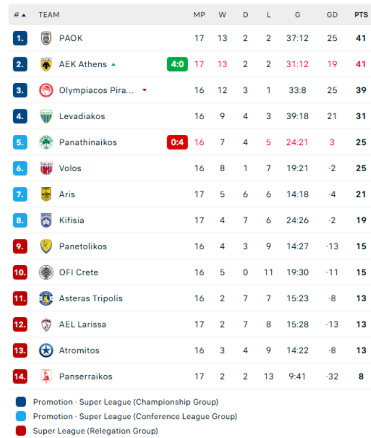 Η βαθμολογία του πρωταθλήματος μετά τη νίκη της ΑΕΛ Novibet απέναντι στον Άρη