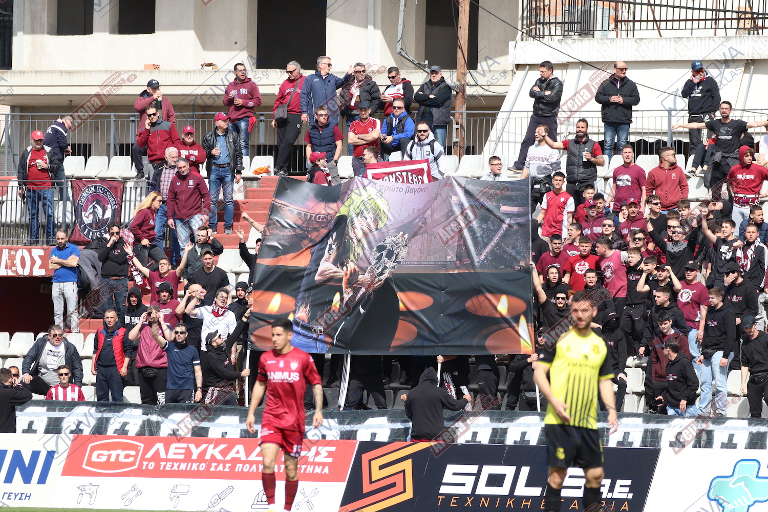 Εννιά λεπτά αργότερα από τη προκαθορισμένη ώρα έναρξης ξεκίνησε η αναμέτρηση της ΑΕΛ με την Αναγέννηση Καρδίτσας στο Στάδιο Αλκαζάρ, λόγω των πανό που είχαν αναρτήσει οι «βυσσινί» φίλαθλοι.