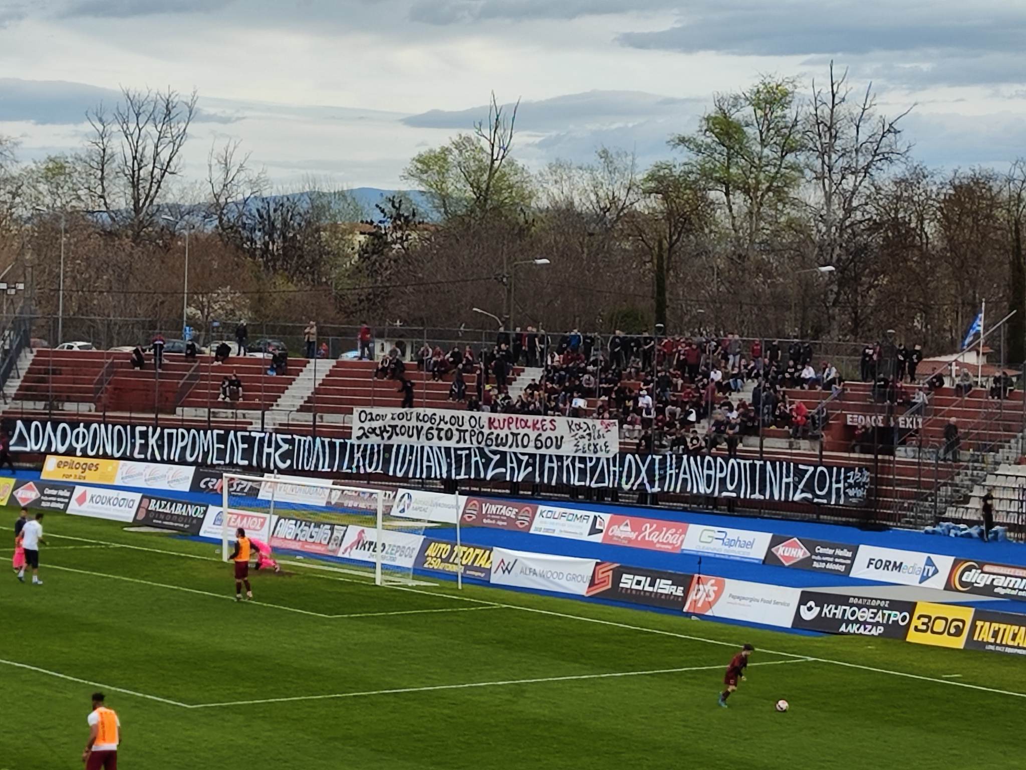 Πιο συγκεκριμένα στη θύρα των οργανωμένων υπήρχε ένα πανό κρεμασμένο όπου έγραφε: «Δολοφόνοι εκ προ μελέτης πολιτικοί, το παν’ για εσάς τα κέρδη, όχι η ανθρώπινη ζωή».