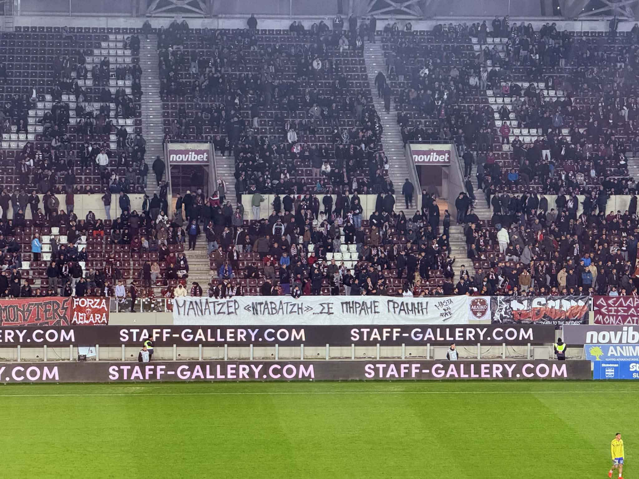 Ένα πανό με το εξής περιεχόμενο «Μάνατζερ Νταβατζή σε πήραμε γραμμή, μάστα και φύγε» εμφανίσθηκε στην Ανατολική κερκίδα του AEL FC ARENA, πριν την σέντρα του αγώνα με τον Αστέρα Τρίπολης.