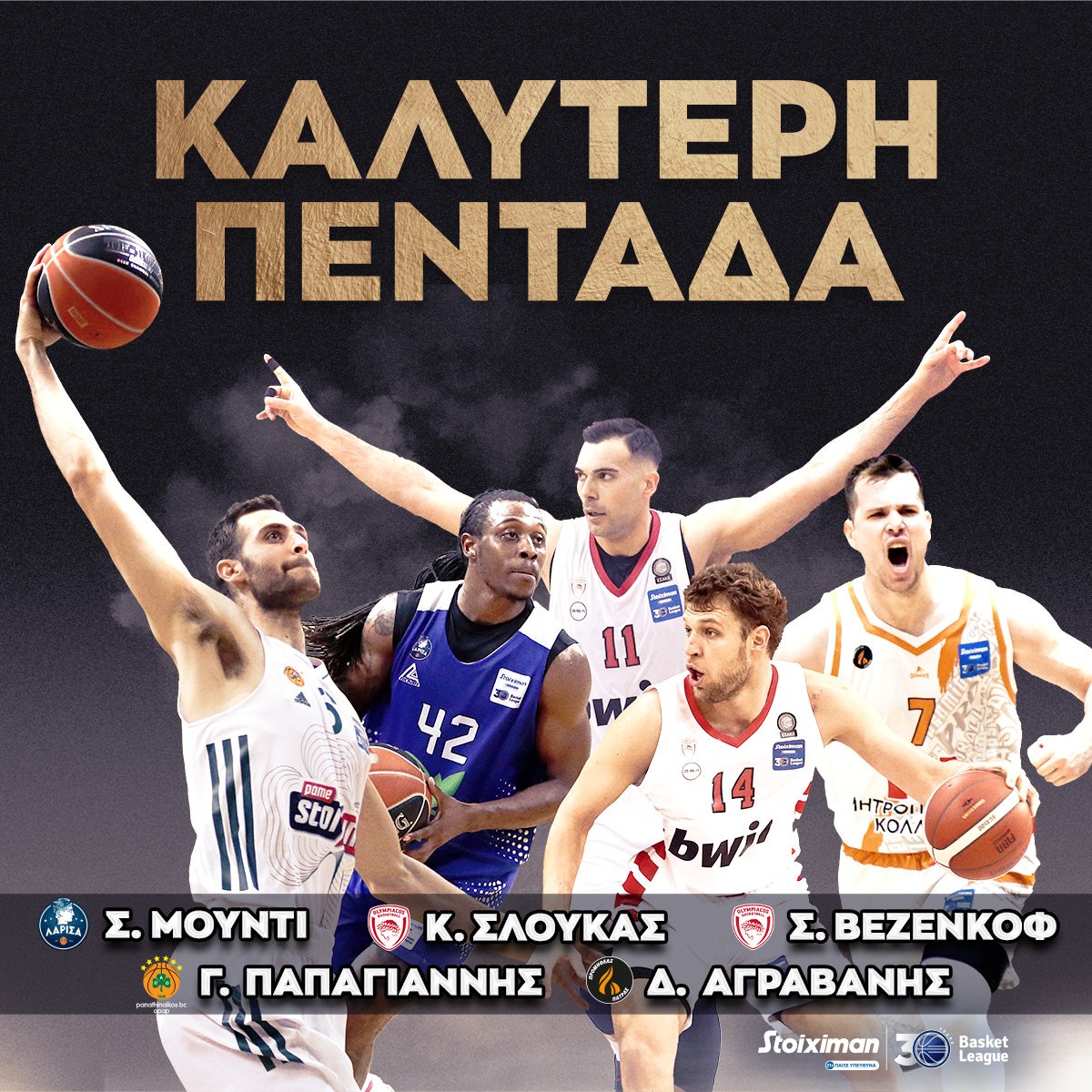 Με δύο παίκτες του Ολυμπιακού και από έναν των Παναθηναϊκού, Προμηθέα και Λάρισας αποτελείται η καλύτερη πεντάδα της φετινής Basket League.