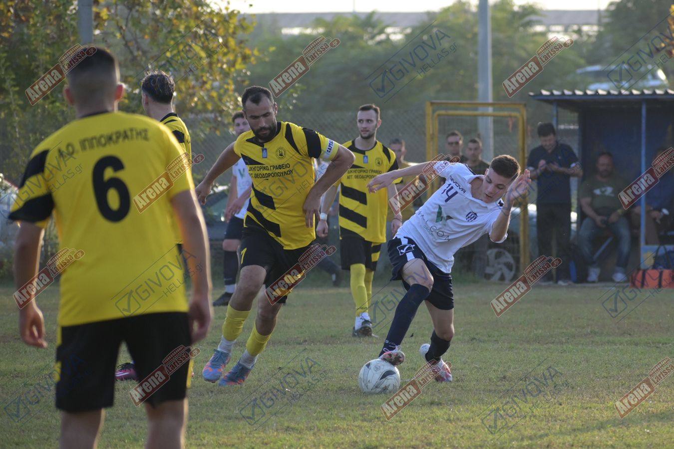 Στο δεύτερο ημίχρονο τώρα, ο Ιπποκράτης κατάφερε να βγάλει αντίδραση, να βγει στην επίθεση και να φτάσει στο γκολ της ισοφάρισης. Πιο συγκεκριμένα στο 61ο λεπτό, ο Παπαποστόλου με όμορφη κεφαλιά νίκησε τον αντίπαλο τερματοφύλακα και ισοφάρισε σε 1 – 1. Όμως ο ίδιος παίκτης στο 74′ αποβλήθηκε και άφησε την ομάδα του με παίκτη λίγοτερο.