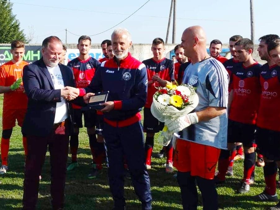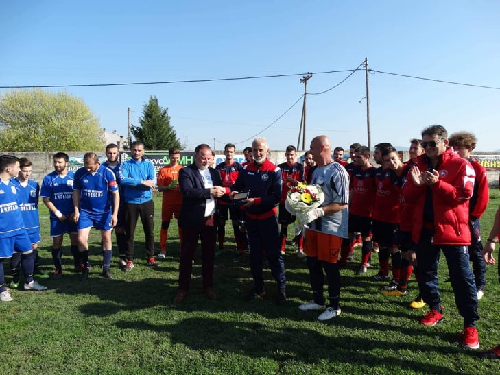 Λίγο πριν την έναρξη του αγώνα λοιπόν, η διοίκηση του Ηρακλή Χάλκης τίμησε τον Χρήστο Γκάτα για τη τετραετή προσφορά του στο σύλλογο στα χρόνια που η ομάδα αγωνίζονταν στη Δ΄Εθνική.