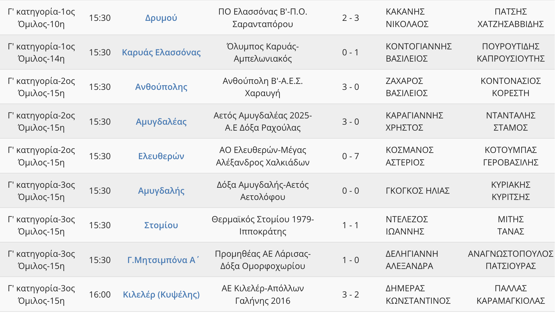 Τα Αποτελέσματα και οι Βαθμολογίες στους 3ου Ομίλους της Γ’ ΕΠΣ Λάρισας