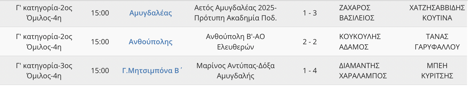 Τα Σαββατιάτικα Αποτελέσματα της Γ’ ΕΠΣ Λάρισας