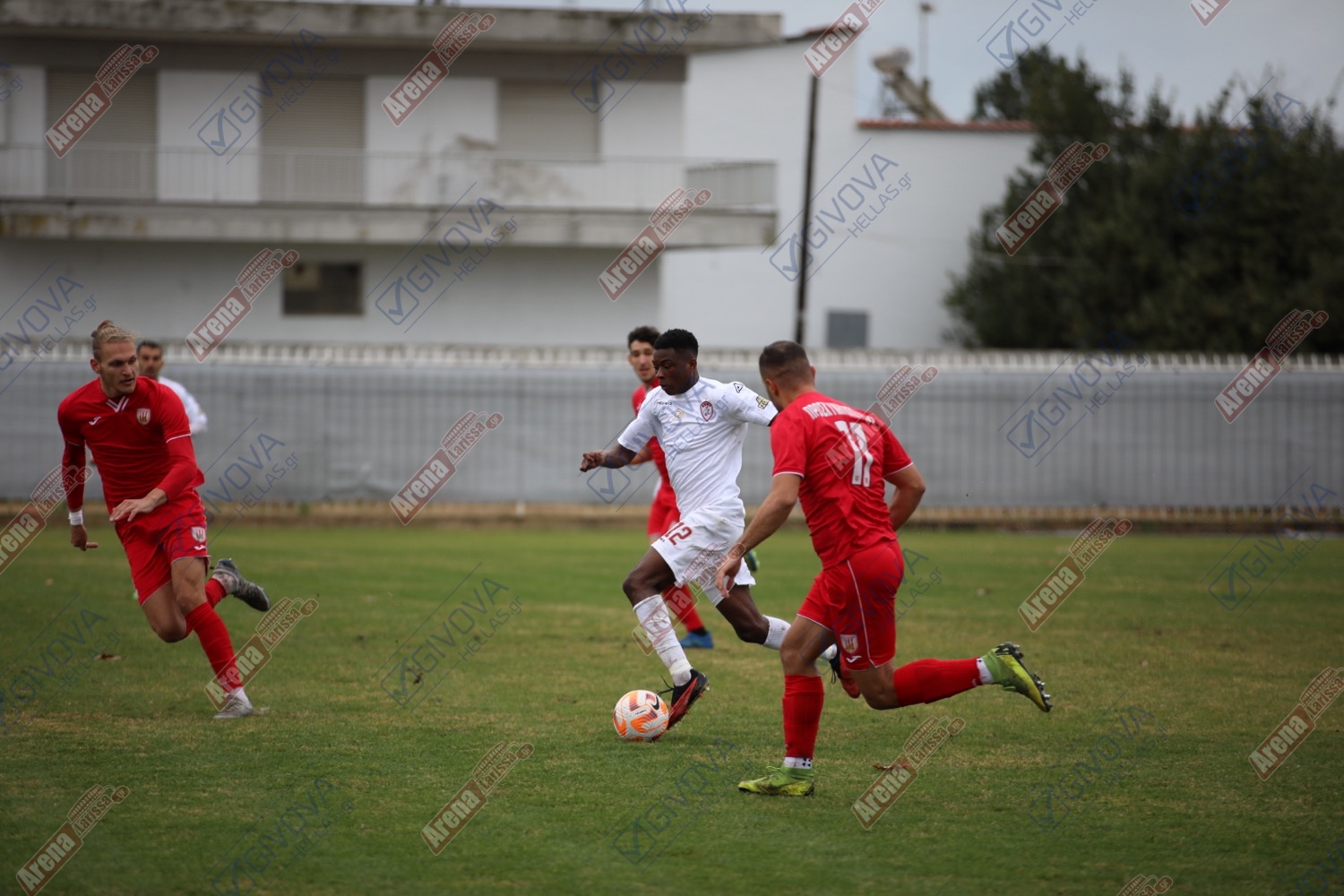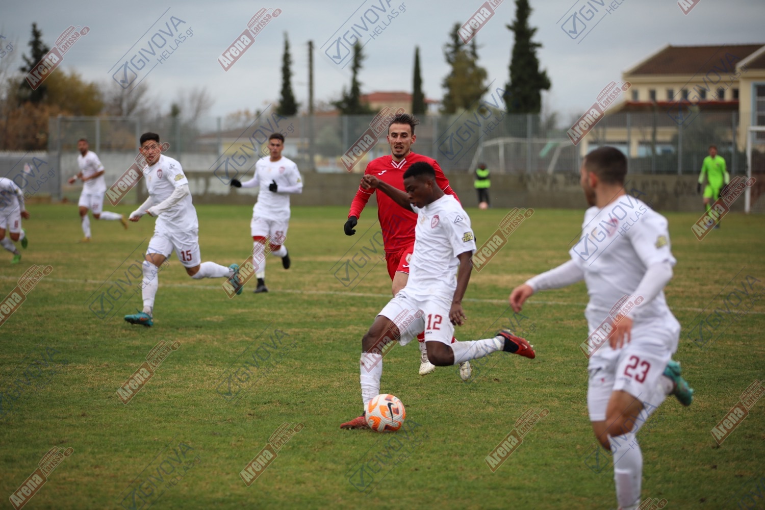 Στη συνέχεια του παιχνιδιού, οι φιλοξενούμενοι ανέλαβαν τη πρωτοβουλία των κινήσεων και έκλεισαν τους γηπεδούχους στο δικό τους μισό, προσπαθώντας να διασπάσουν έτσι τη πολυπρόσωπη αντίπαλη άμυνα. Κάτι που δεν συνέβη ούτε στο 25′ με σουτ του Κοσσονού μέσα από τη περιοχή που μπλόκαρε εύκολα ο Κασαπίδης, αλλά ούτε στη μεγαλύτερη φάση του 32′, όταν ο Πεντρόσο από τα αριστερά στη περιοχή επιχείρησε το σουτ και μετά από κόντρα, η μπάλα πέρασε χιλιοστά δίπλα από το δοκάρι και κατέληξε κόρνερ.