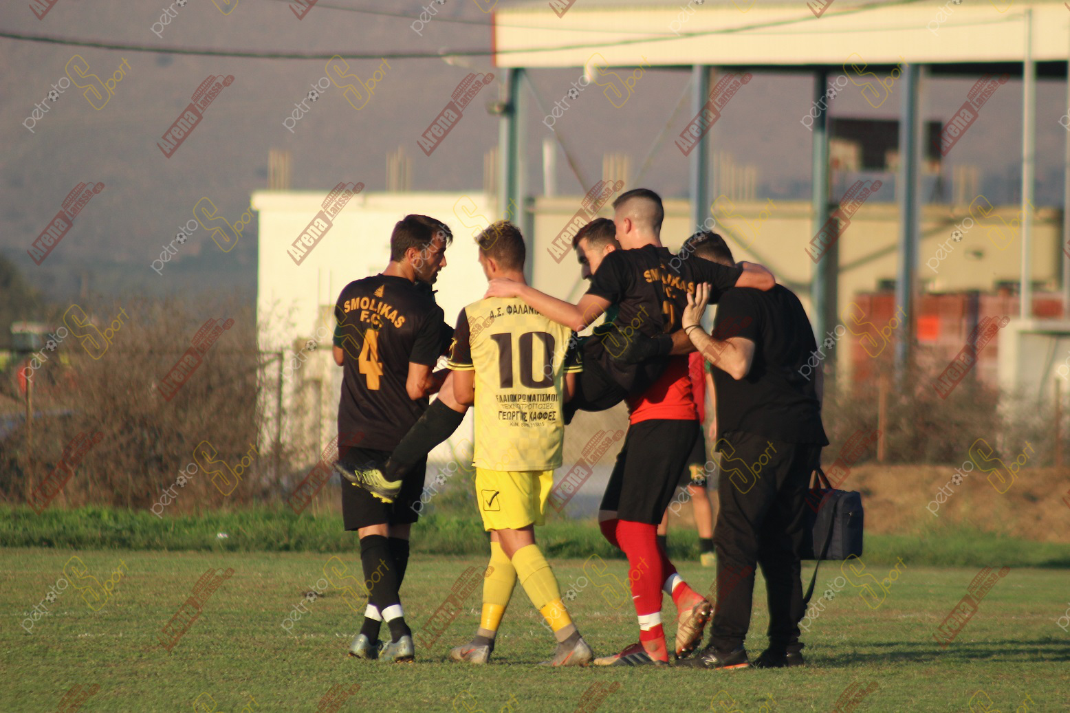 Σμόλικας Φαλάνης (Βασίλης Μπακογιάννης): Γραβάνης, Ζαμπέτας (62′ λ.τ. Γκατζιούρας), Σκούπρας, Κολοβός Κ., Κακαζούκης, Λάλλος (48′ Νασιάκος), Μπέτσης (71′ Καρέντζος), Μολάς, Γκατζούλης, Παπαγεωργίου (43′ λ.τ. Τσιρογιάννης), Ηλιόπουλος.