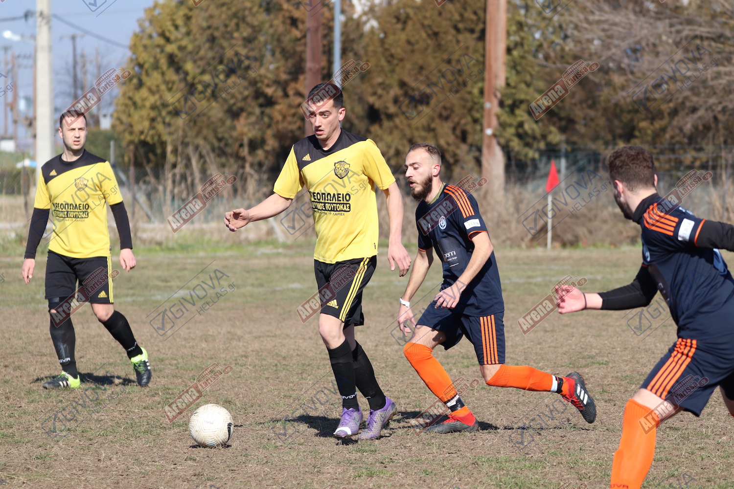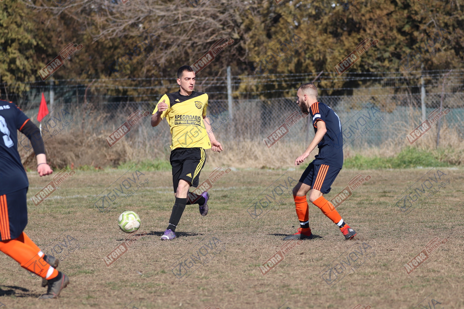 Στο πρώτο ημίχρονο ο Σκριάπας στο 15′ απείλησε για τους γηπεδούχους, ενώ για τους φιλοξενούμενους λίγο πριν το ημίχρονο ο Χρήστος Τανάγιας, έδωσε το προβάδισμα στο σκορ στο συγκρότημα του Χατζημπίρου, αφού τσίμπησε την μπάλα από τον Μελετιάδη.
