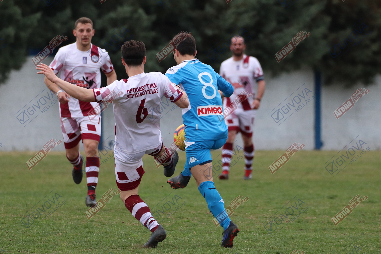 Στα του αγώνα, η Βερδικούσια πήρε προβάδισμα στο σκορ στο 22ο λεπτό με τον Νίκο Οικονόμου του Αθανασίου με εύστοχη εκτέλεση πέναλτι, με τις δύο ομάδες να πηγαίνουν στα αποδυτήρια και το σκορ να είναι υπέρ των φιλοξενουμένων.