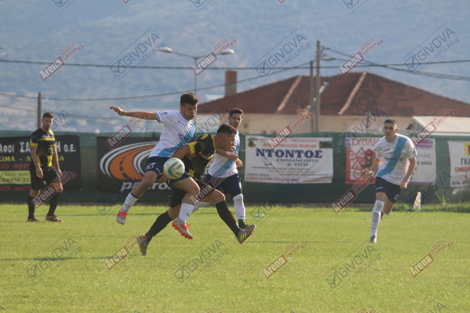 Ο Όλυμπος προσπάθησε να βγάλει αντεπίθεση, με τον Μαγαζιώτη να βγαίνει από την περιοχή του και σαν λίμπερο απομάκρυνε την μπάλα δίνοντάς της ύψος. Αυτήν πέρασε πάνω από τον Θανάση Μπούμπουλη και έφτασε στον Αποστόλη Ζιόμπουρα ο οποίος σούταρε μέσα από την περιοχή, στέλνοντας την μπάλα στο δεξί δοκάρι της εστίας των Γόννων.