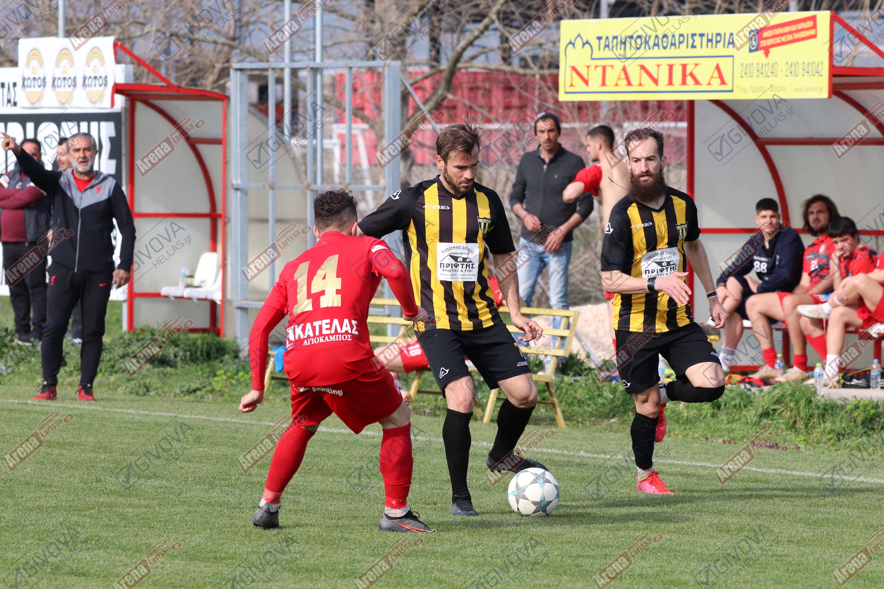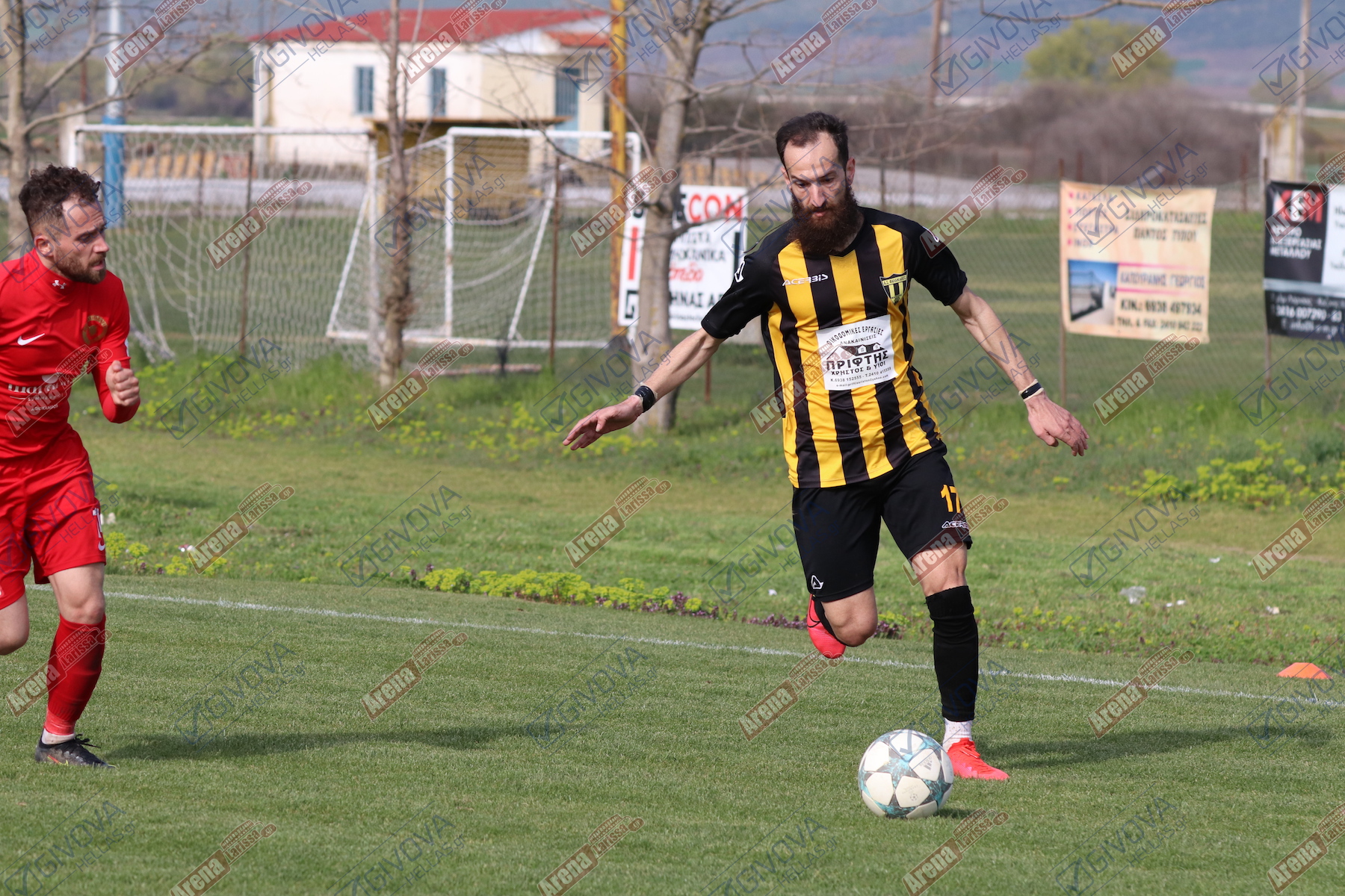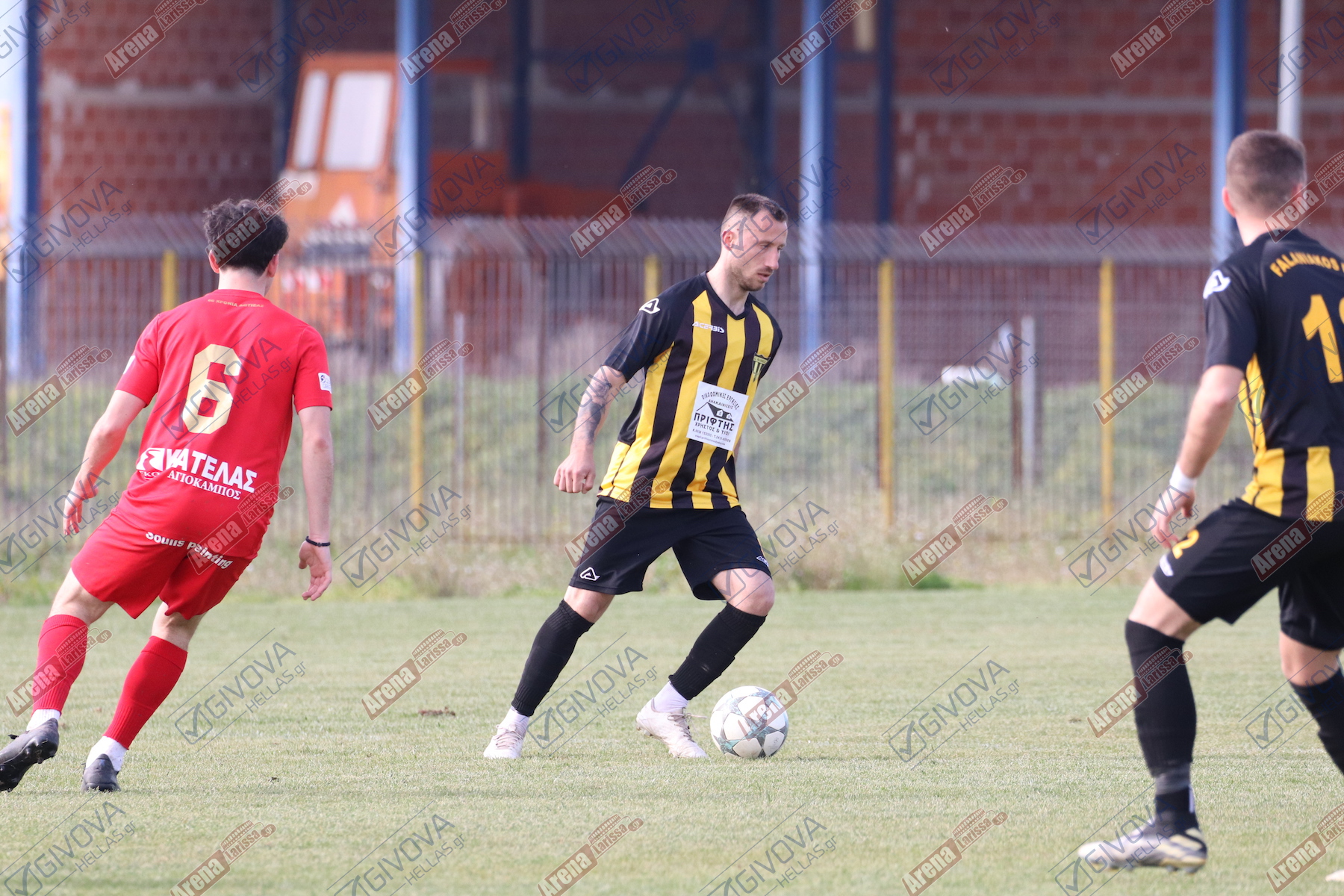 Σε ένα σπουδαίο ματς στο γήπεδο της Φαλάνης, ο πρώην παίκτης του Φαλανιακού, Γιώργος Λεσάι βρήκε τον δρόμο προς τα δίχτυα στο 7ο λεπτό με σουτ από θέση βολής, ενώ ο Γιώργος Μπλατσέρι στο 33′ έκανε δύο τα τέρματα του Δωτιέα με σουτ ύστερα από γύρισμα της μπάλας από τον Δημήτρη Δημολιού.