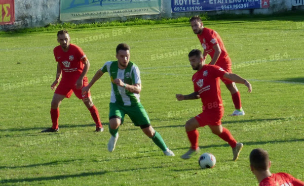 Η ομάδα της Τσαριτσάνης προηγήθηκε 1 – 0 με εύστοχη εκτέλεση πέναλτι του Κοντοθανάση στο 22’ (σε ανατροπή του Ντάλλα), που ήταν και το σκορ του ημιχρόνου.
