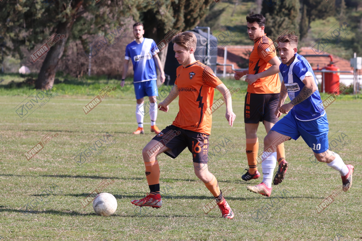 Στο αγωνιστικό κομμάτι, οι γηπεδούχοι ευτύχησαν να «ανοίξουν» το σκορ στο 16′. Ο Γιώργος Κόκρας κέρδισε πέναλτι από τον Βαγγέλη Φαρμάκα και ο Τριαντάφυλλος Σερίφης από τα έντεκα βήματα ήταν εύστοχος για το 1 – 0.