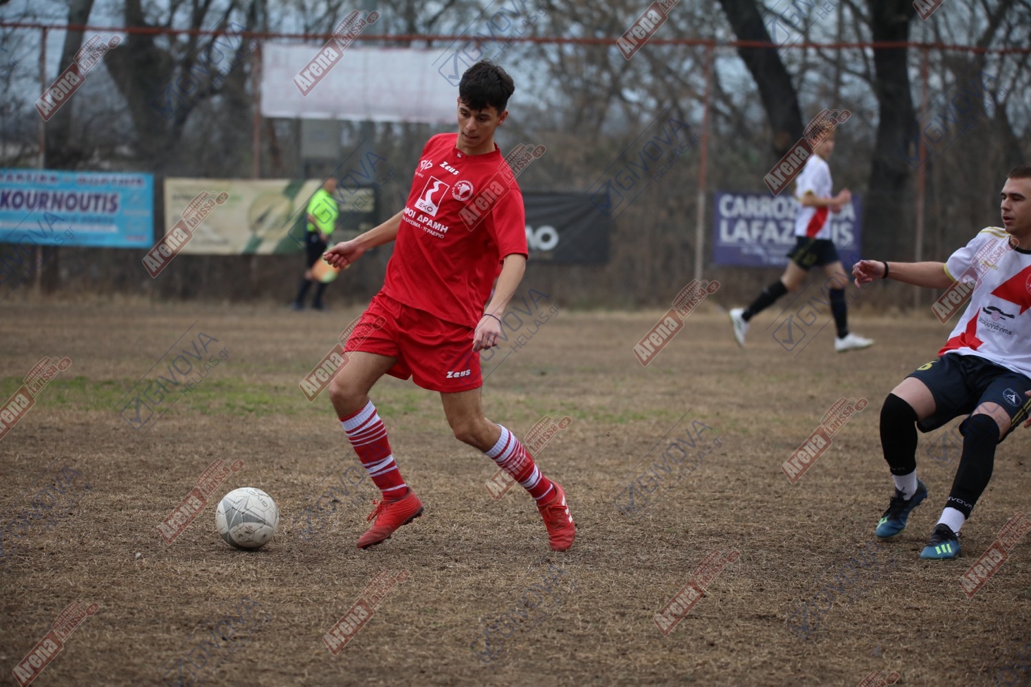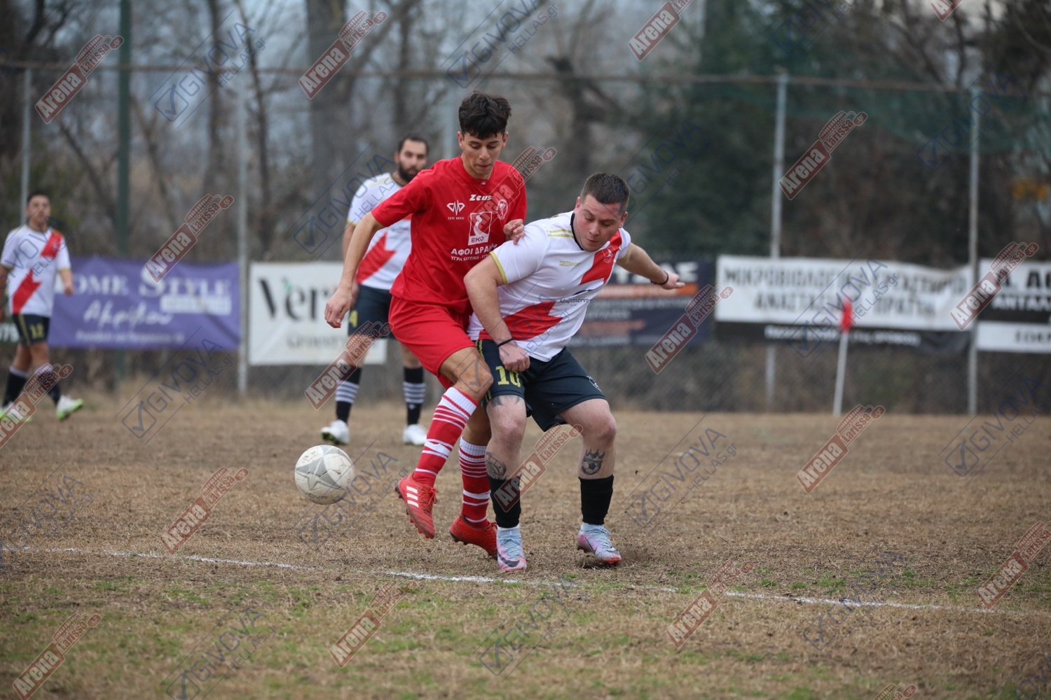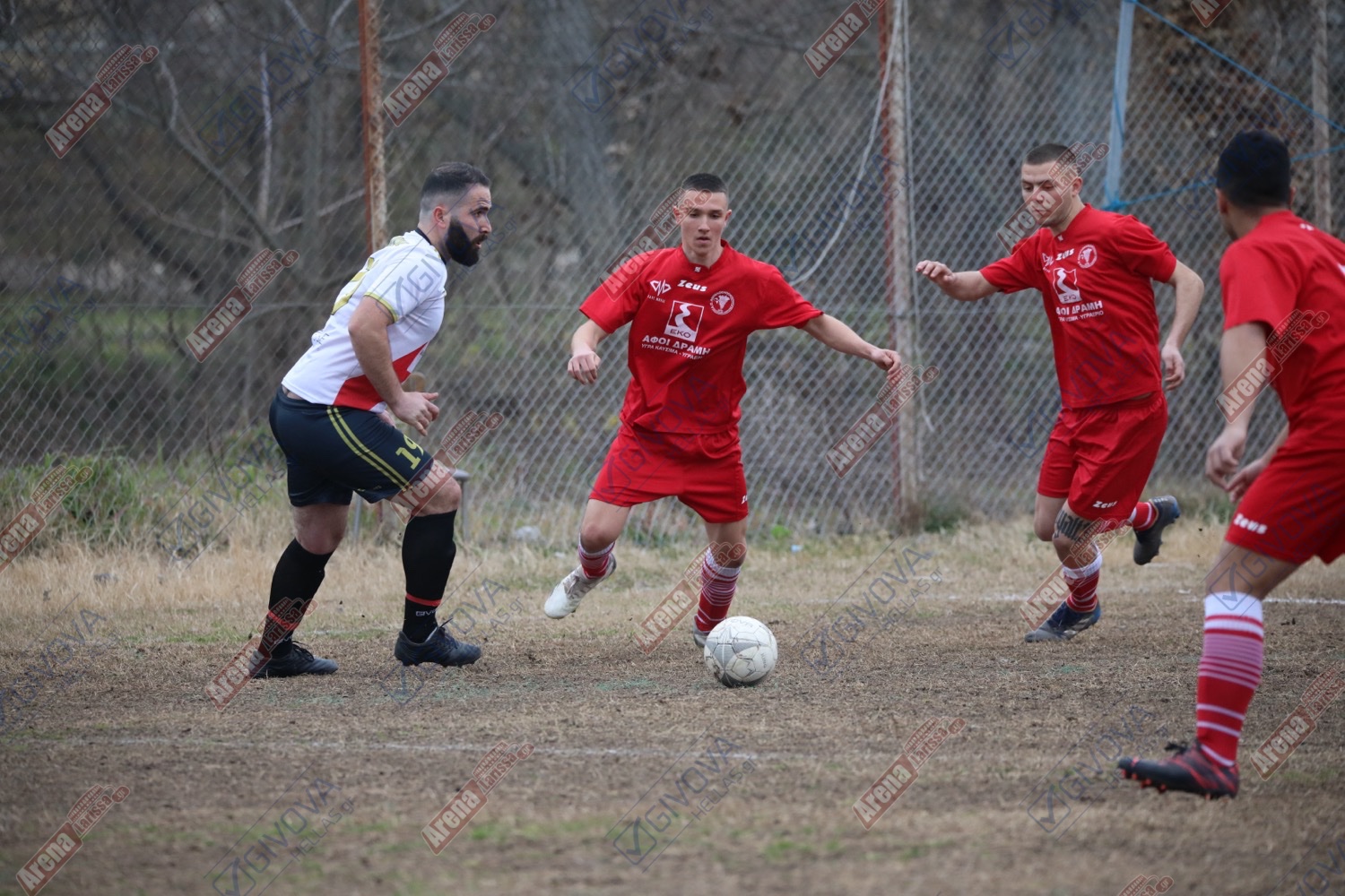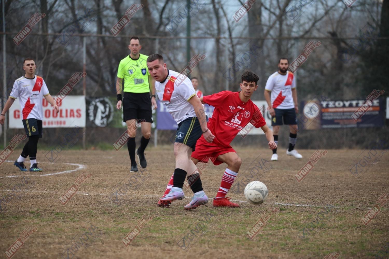 Το γκολ όμως δεν άργησε να έρθει. Στο 23′ μετά από ωραία προσωπική ενέργεια του Αχιλλέα Βέλλα οι γηπεδούχοι άνοιξαν το σκορ που ήταν και το αποτέλεσμα του πρώτου μέρους.