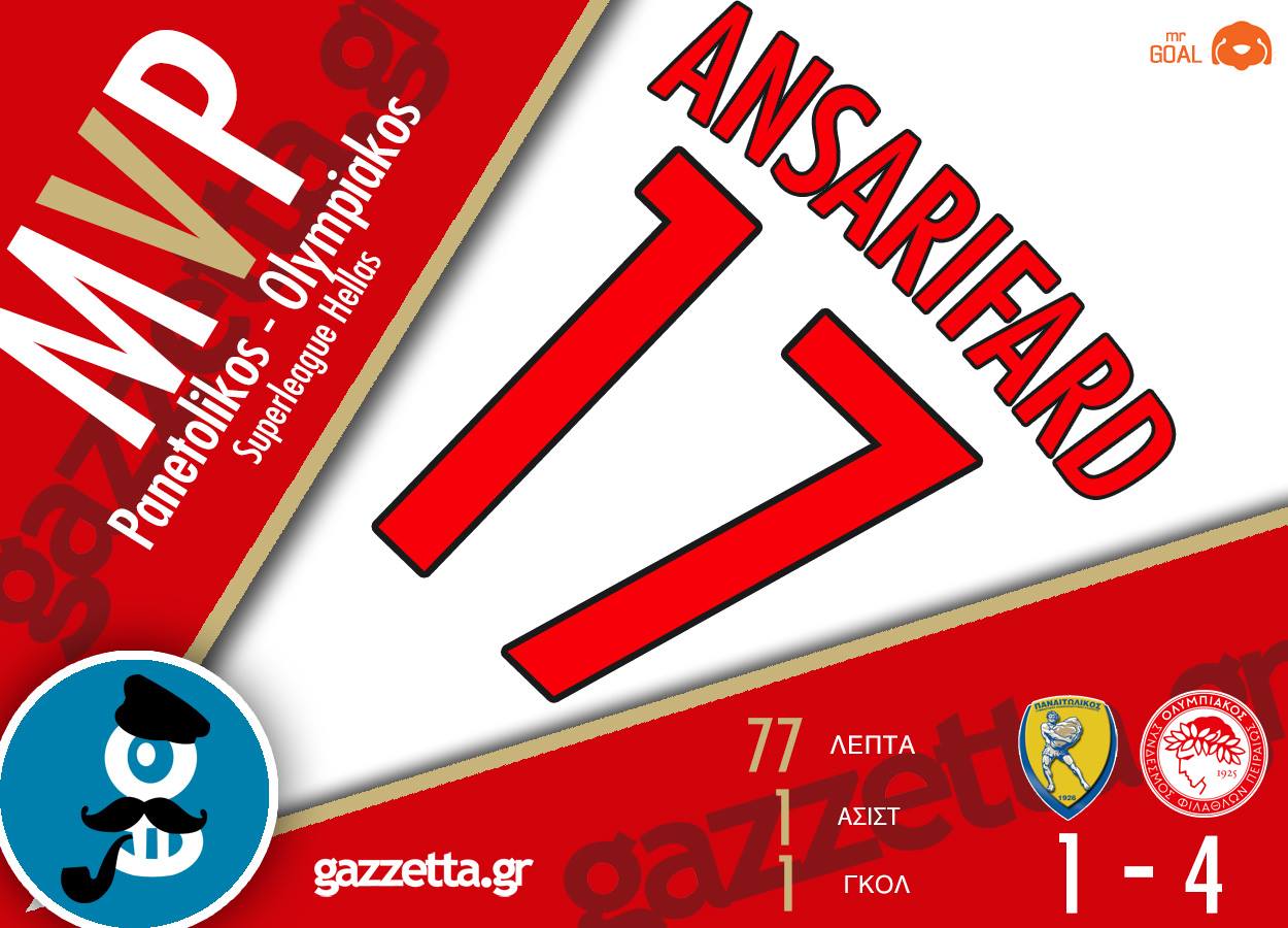 Ο Καρίμ Ανσαριφάρντ ξεκίνησε ως βασικός και σε 77′ σκόραρε μια φορά κι έδωσε μια ασίστ, κατακτώντας τον τίτλο του πολυτιμότερο από τον σκύλο που… μυρίζει τα πάντα, τον Mr. Goal!
