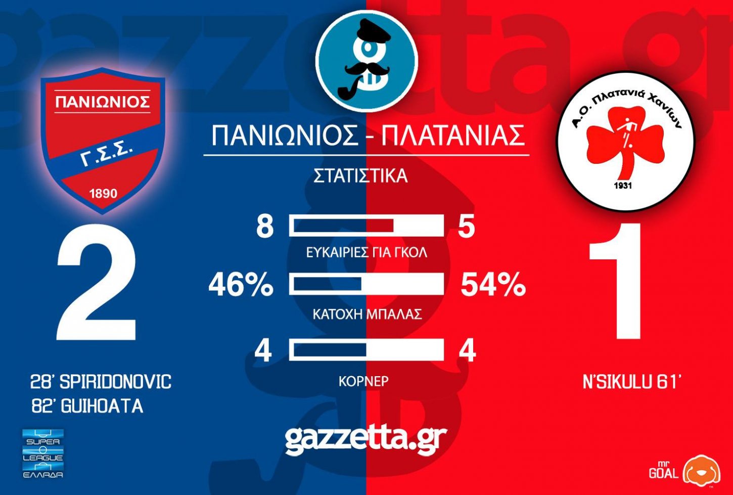 Στη Νέα Σμύρνη, ο Πανιώνιος αντιμετώπισε τον αξιόμαχο Πλατανιά, που αν και τελευταίος, κυνήγησε με πάθος τις πιθανότητές του και κατάφερε να ισοφαρίσει σε 1-1 με τον Ενσικουλού το γκολ του Σπιριντόνοβιτς.