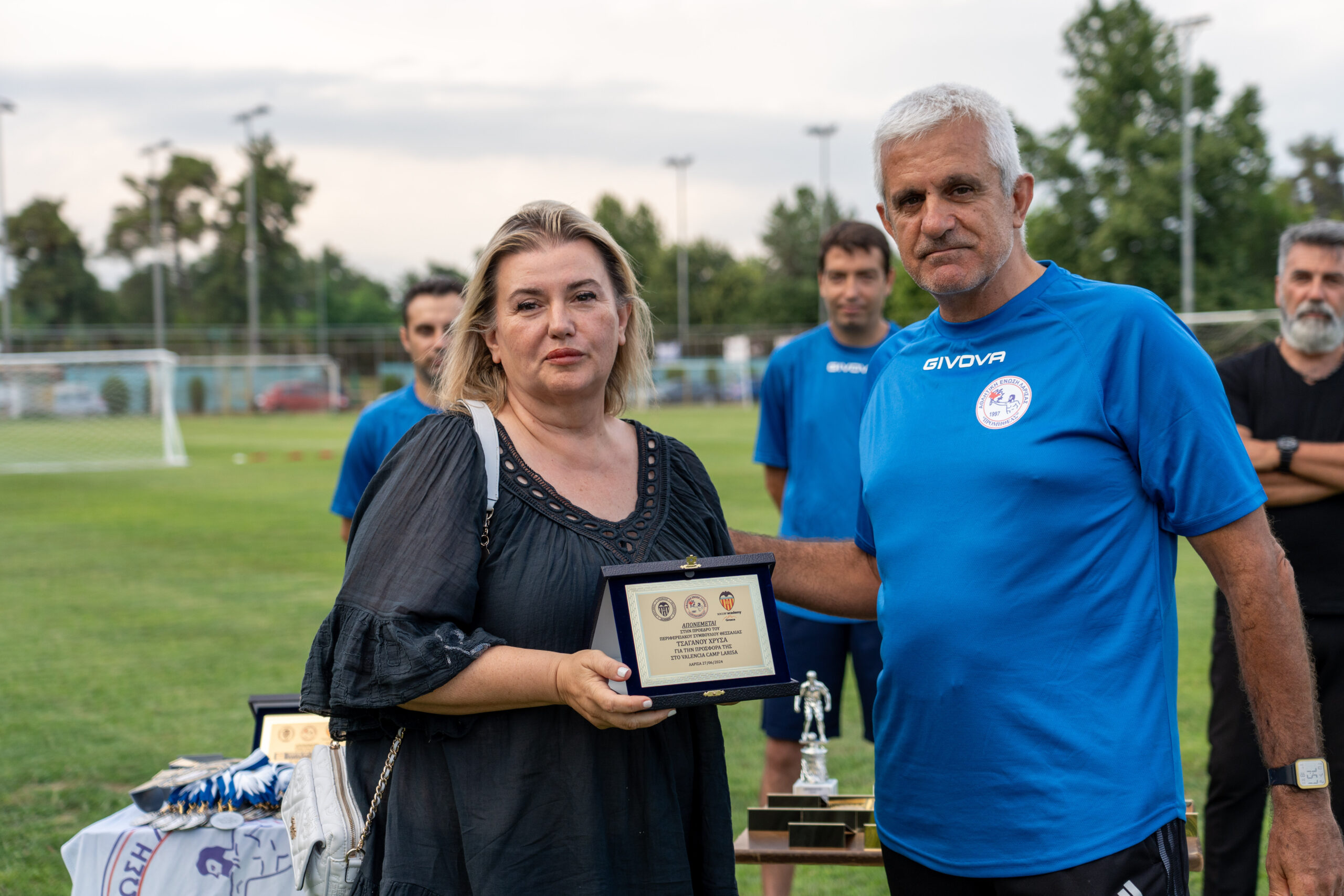 Ο  επιχειρηματίας κ. Παπαδόπουλος Γεώργιος αντιπρόσωπος της εταιρείας Total energies,  για την μεγάλη προσφορά του μέσο χορηγίας στην πραγματοποίηση του πρόσφατου Camp ποδοσφαίρου στην πόλη της Λάρισας από προπονητές της Valencia.
