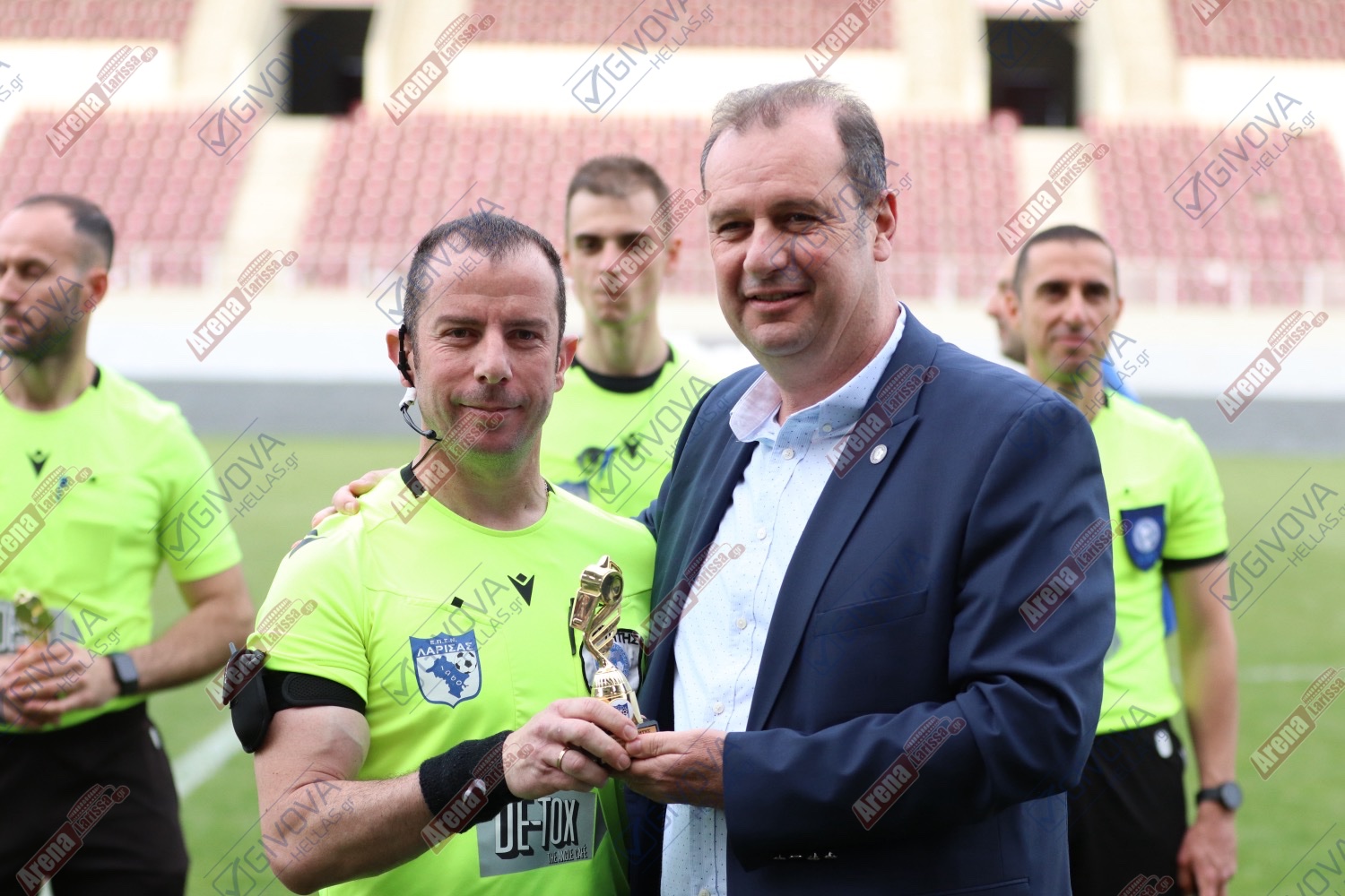 Η αναμέτρηση διεξήχθη στο AEL FC ARENA μπροστά σε περίπου 2.500 φιλάθλους και, παρότι δεν πρόσφερε πλούσιο θέαμα, κράτησε αμείωτο το ενδιαφέρον έως το τελευταίο σφύριγμα. Οι δυνατές μονομαχίες και η ένταση κυριάρχησαν καθ’ όλη τη διάρκεια του αγώνα. Η ομάδα του Ηλία Σαραφίδη, που αγωνίζεται στη Γ’ Εθνική και πρόσφατα κατέκτησε τον τίτλο στον 3ο όμιλο, έδειξε χαρακτήρα, ανέτρεψε την εις βάρος της κατάσταση και έφτασε τόσο στη νίκη όσο και στο νταμπλ. Παράλληλα, πήρε μια άτυπη ρεβάνς για την περσινή ήττα της από τον Ηρακλή με 1-0.